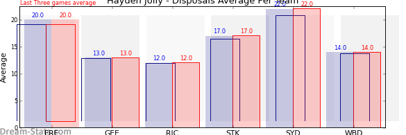 | Team | Games | Last 3 Avg. | Overall Avg. | Difference |