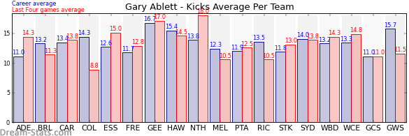 | Carlton | 18 | 13.8 | 13.4 | 0.4 |