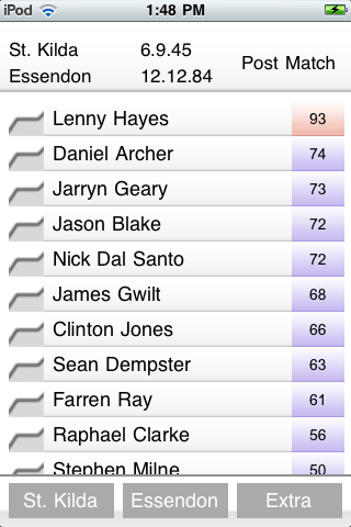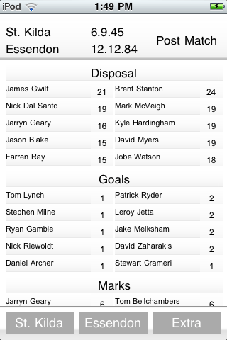 As well as having the ability to view the statistics for each individual player, you will also have the ability to view the highest ranked players in a number of areas. This means you have the ability to see who's the top goal kicker or who's gotten the most disposals on the ground. Below is an image of the Rankings section.